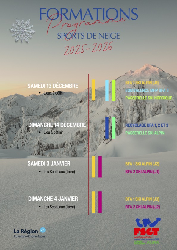 et est en capacité de vous proposer le calendrier des formations au Brevet fédéral Ski et/ou recyclage pour la saison 25/26