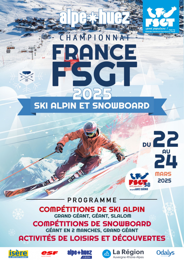 Du 22 au 24 mars 2025, l’Alpe d’Huez a accueilli les Championnats Fédéraux de ski FSGT, un rendez-vous attendu chaque année par les passionné·es de glisse venus des quatre coins de la France. Pendant trois jours, les pistes ont vibré au rythme des épreuves et des échanges chaleureux entre les participant·es.